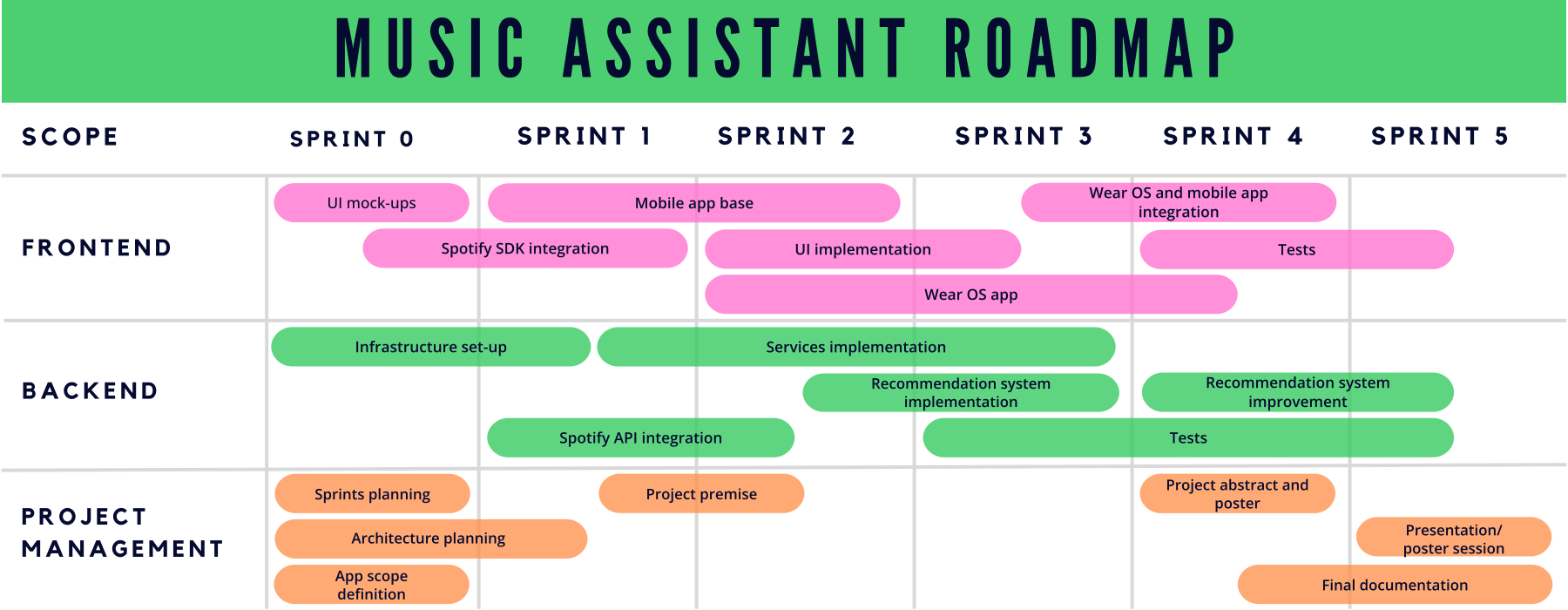 Music Assistant to aplikacja mobilna zintegrowana z platformą Spotify, która redefiniuje sposób dostarczania muzyki użytkownikom. Dzięki możliwości tworzenia spersonalizowanych profili muzycznych, takich jak spacer, trening czy nauka, aplikacja towarzyszy użytkownikom w ich codziennych aktywnościach. Dostarczane utwory są spójne w obrębie jednego profilu muzycznego, co stanowi przewagę nad klasycznym radiem, a jednocześnie nie ma potrzeby ręcznego zarządzania playlistami, co bywa czasochłonne na platformach streamingowych. Charakter muzyczny każdego profilu jest na bieżąco aktualizowany przez system rekomendacji na podstawie danych o aktywności użytkownika. To innowacyjne podejście skierowane jest przede wszystkim do tych odbiorców, którzy szukają powtarzalnego stylu muzyki w określonych sytuacjach, ale nie chcą samodzielnie szukać nowych, pasujących utworów.