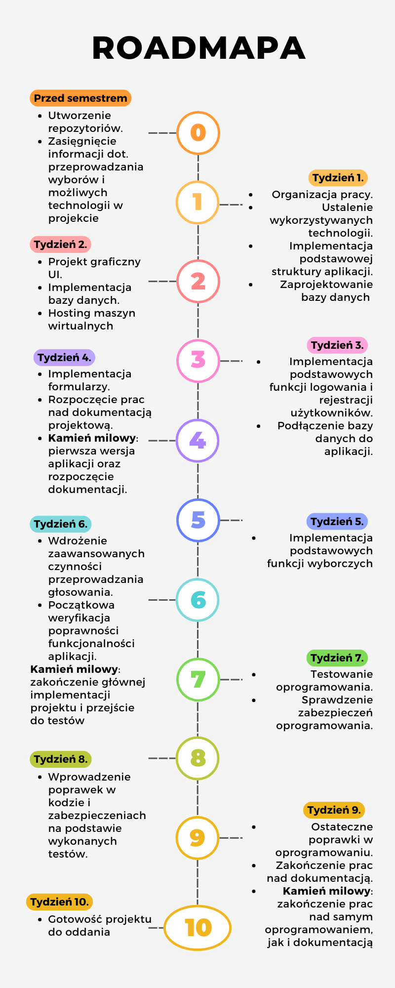 Syntetyczny opis projektu Oprogramowanie, które umożliwi zdalny udział w wyborach. Użytkownicy będą mieli możliwość oddać swój głos bez wychodzenia z domu, a także zasięgnąć informacji dotyczących sposobu głosowania, startujących kandydatów, jak i wyborczych statystyk.