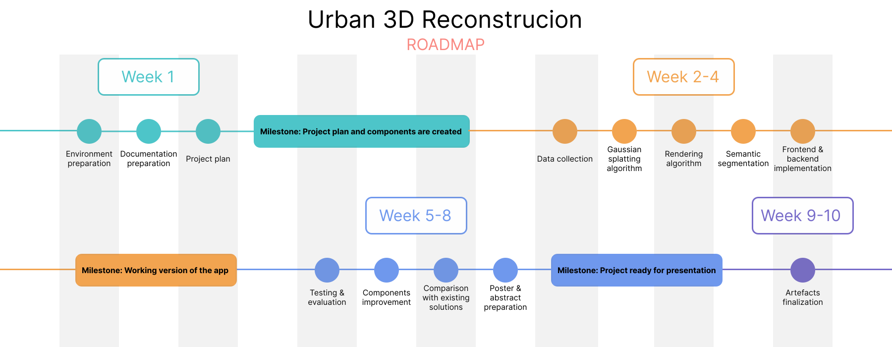 Celem pracy jest wykonanie aplikacji, która wykorzystuje metody fotogrametrii do modelowania miejskich scen 3D. Dane wejściowe stanowią zdjęcia obszarów miejskich, które są przetwarzane w celu stworzenia modelu 3D, a następnie segmentowane na obiekty przestrzeni miejskiej, takie jak budynki, tereny zielone, itp.. Aplikacja będzie wizualizować model oraz wyniki segmentacji semantycznej.