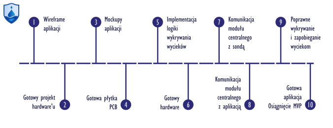 W celu zrealizowania projektu zostanie zaprojektowany i wytworzony dedykowany sprzęt korzystający z mikrokontrolerów STM32 i ESP32 oraz gotowych komponentów hydraulicznych - przepływomierza oraz elektrozaworu. W celu fizycznego testowania projektu planowane jest również zmontowanie prostej instalacji wodnej pozwalającej zasymulowanie wycieku.