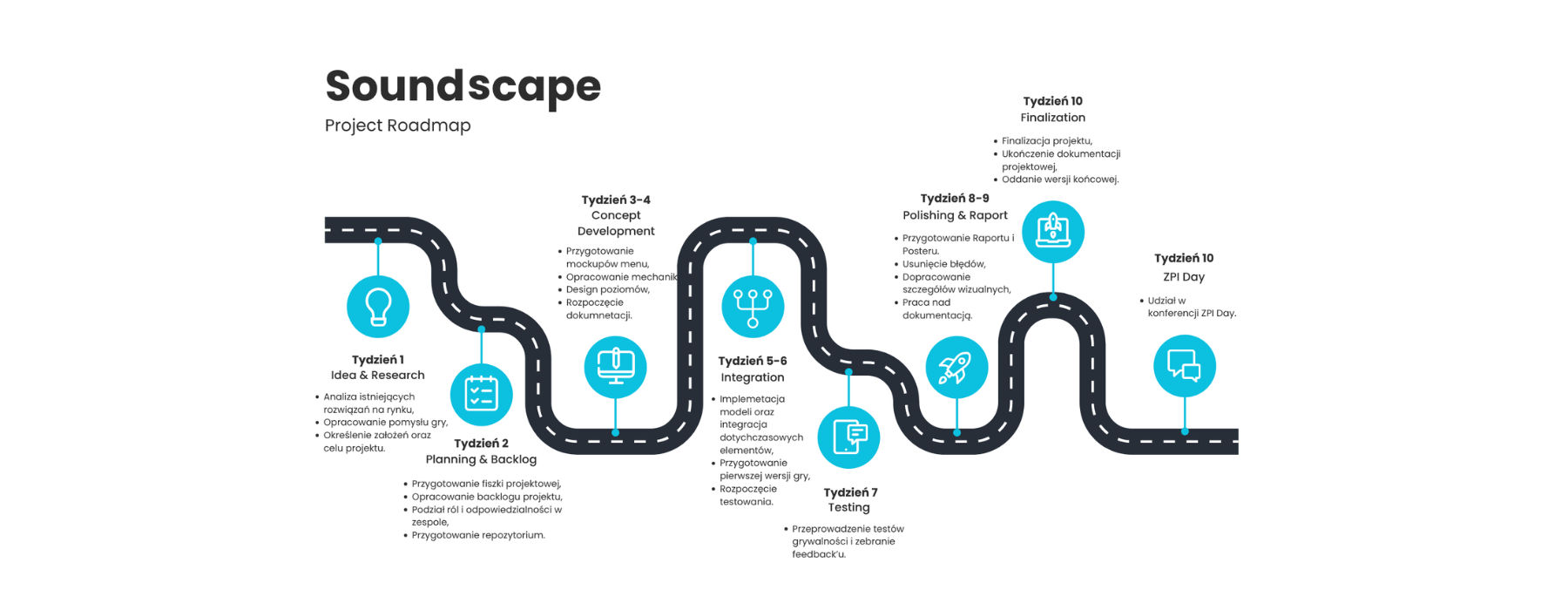 Produktem końcowym będzie trójwymiarowa gra platformowo-logiczna Soundscape oraz kod źródłowy biblioteki narzędzi dla twórców gier w silniku Godot. Soundscape będzie działać jako samodzielna aplikacja desktopowa, z możliwością uruchomienia na wielu platformach - Windows, macOS i Linux, dzięki Godot Engine.