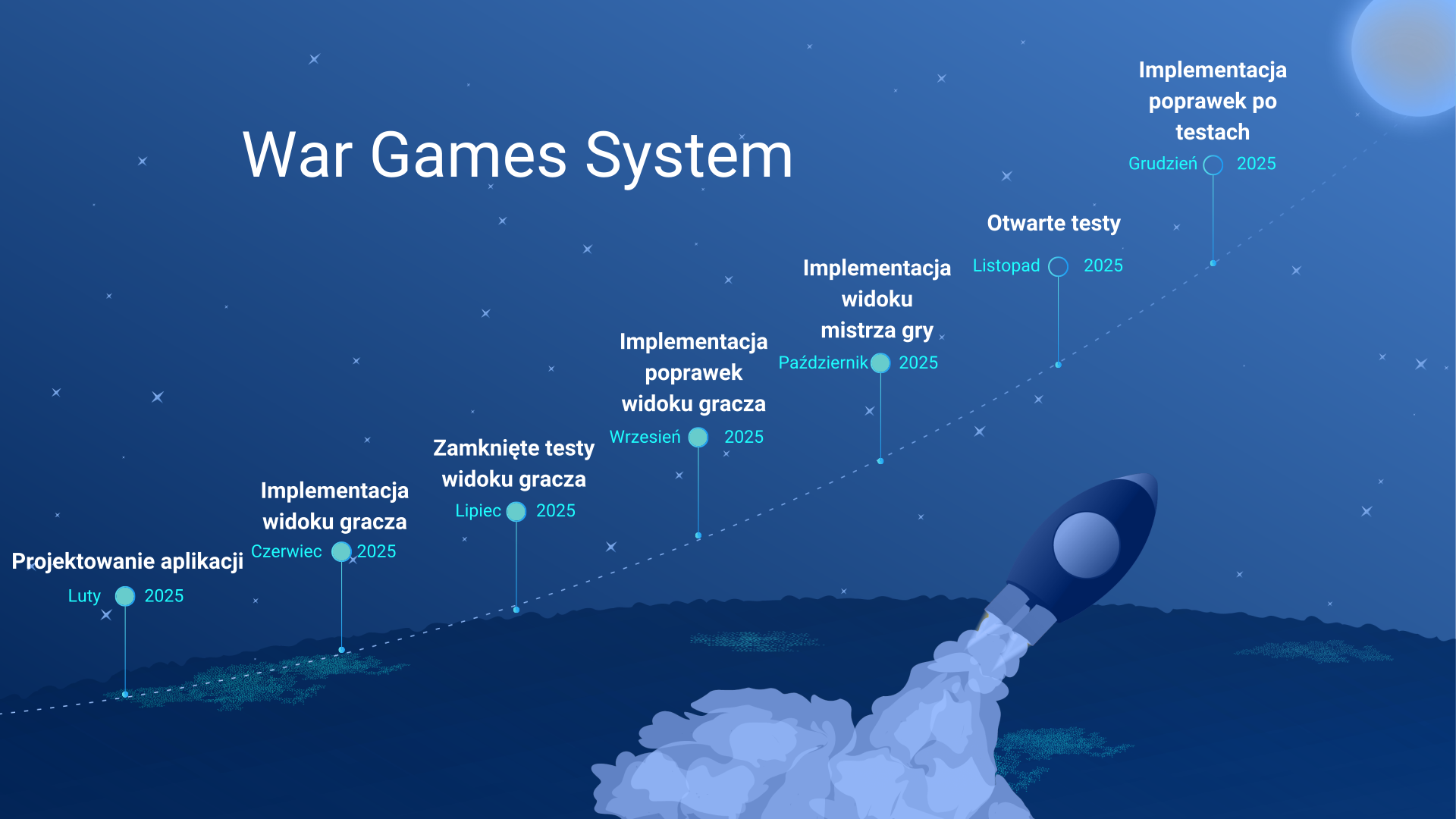 Końcowym produktem będzie aplikacja webowa War Games Hub zbudowana w oparciu o technologie C#, .NET, Angular i PostgreSQL z wykorzystaniem systemu kontroli wersji Git i platformy Docker do konteneryzacji. Charakterystyka funkcjonalna systemu zakłada obsługę użytkowników w dwóch rolach: mistrzów gry z pełnymi prawami zarządzania danymi gry i przyznawania dostępu oraz zwykłych graczy z dostępem ograniczonym do zarządzania danymi swojego państwa. Szczególne dla systemu będzie to, że dany użytkownik w kontekstach różnych gier będzie mógł mieć inne role. Aplikacja webowa zbudowana będzie zgodnie ze strukturą Model-View-Controler, ze szczególnym zwróceniem uwagi na rozdzielność danych poszczególnych gier w ramach jednej bazy danych przy użyciu schematów. Ze względu na potrzeby i preferencje użytkowników, zaimplementowane funkcjonalności będą możliwie elastycznie i nieograniczające możliwości tworzenia różnorodnych gier, w związku z tym projekt wizualnej strony aplikacji będzie przede wszystkim czytelny i uniwersalny.
